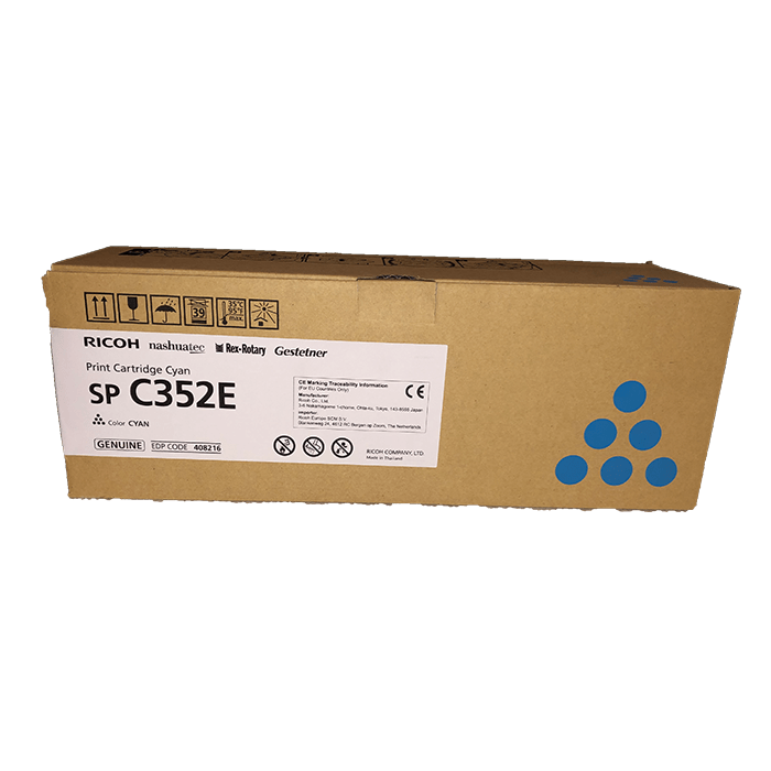 Cartouche De Toner Laser Original Ricoh 408216 Cyan – Haute Performance 6000 Pages – Compatible SP C352DN/SP C352E – Qualité Professionnelle Garantie