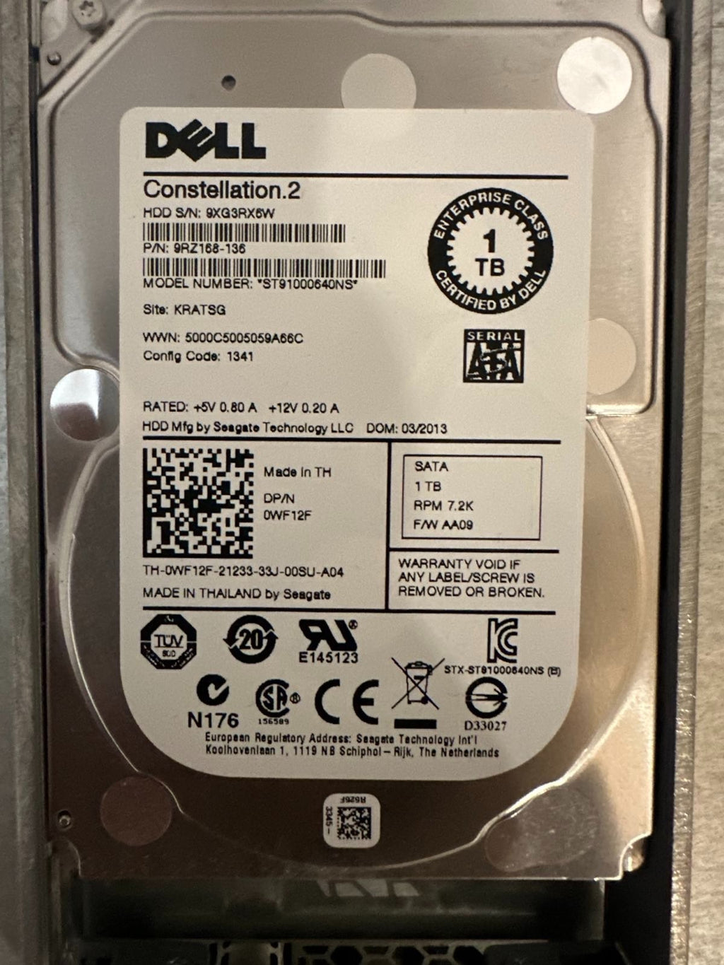 💾 Disque Dur Dell 1 To SATA 6Gb/s 7200 RPM 2.5" Avec Chariot Pour Serveurs PowerEdge 💾