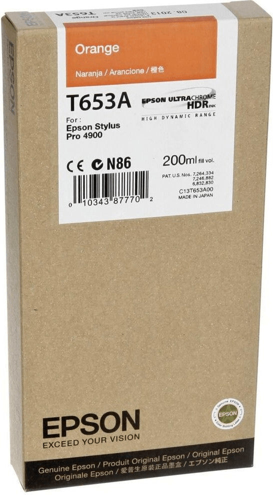 🖨️ EPSON C13T653A00 est une cartouche d’encre originale Epson de couleur Orange, conçue pour les traceurs professionnels de la marque.
