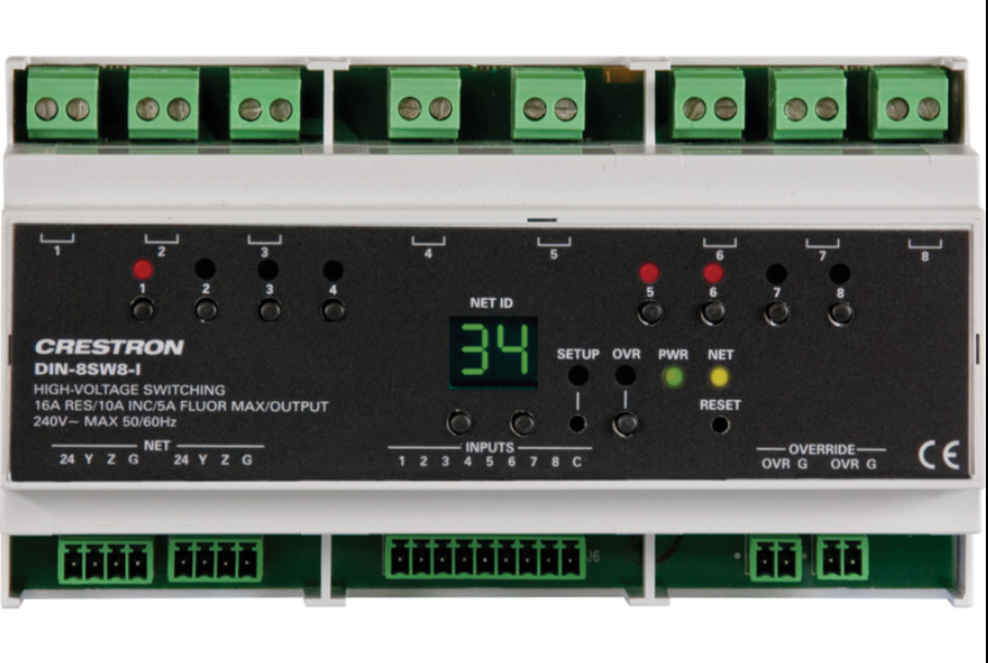 Module Crestron DIN-8SW8-I (Réf. 6503776) - Neuf & Scellé - Contrôle d'Éclairage 8 Canaux, Entrées Numériques, Montage sur Rail DIN, 120-240VAC