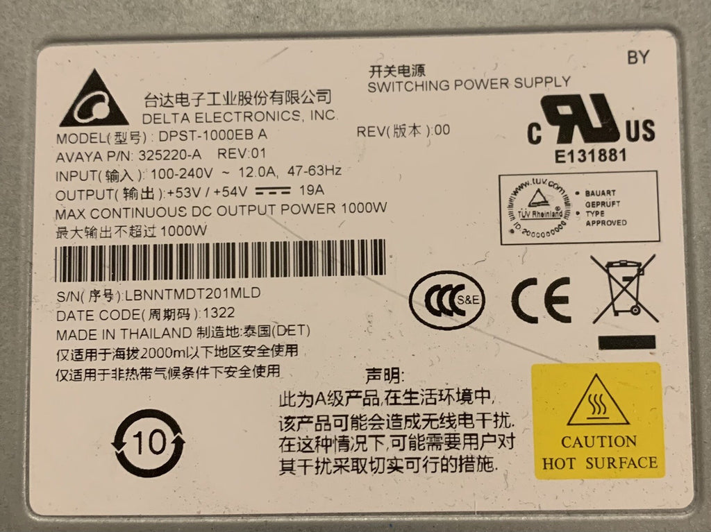Alimentation AVAYA 325220-A Pour Avaya 4826GTS-PWR+ 1000W
