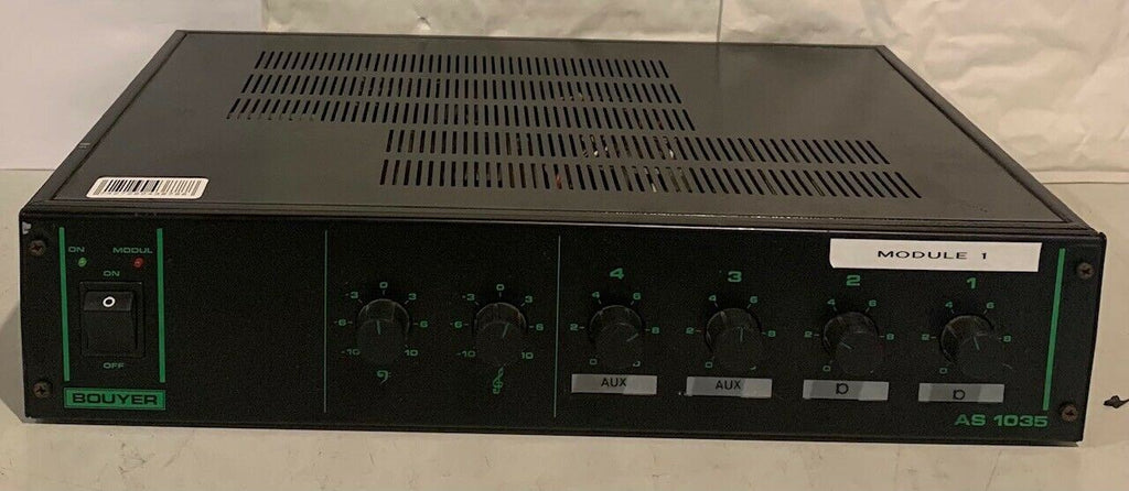 Amplificateur de sonorisation professionnel BOUYER AS 1035 de 30W effectifs, accompagné de son alimentation d'origine. Cet appareil vintage des années 1980 a été soigneusement testé et fonctionne parfaitement. Idéal pour les systèmes de sonorisation, installations audio publiques, ateliers ou garages nécessitant une amplification fiable et robuste.