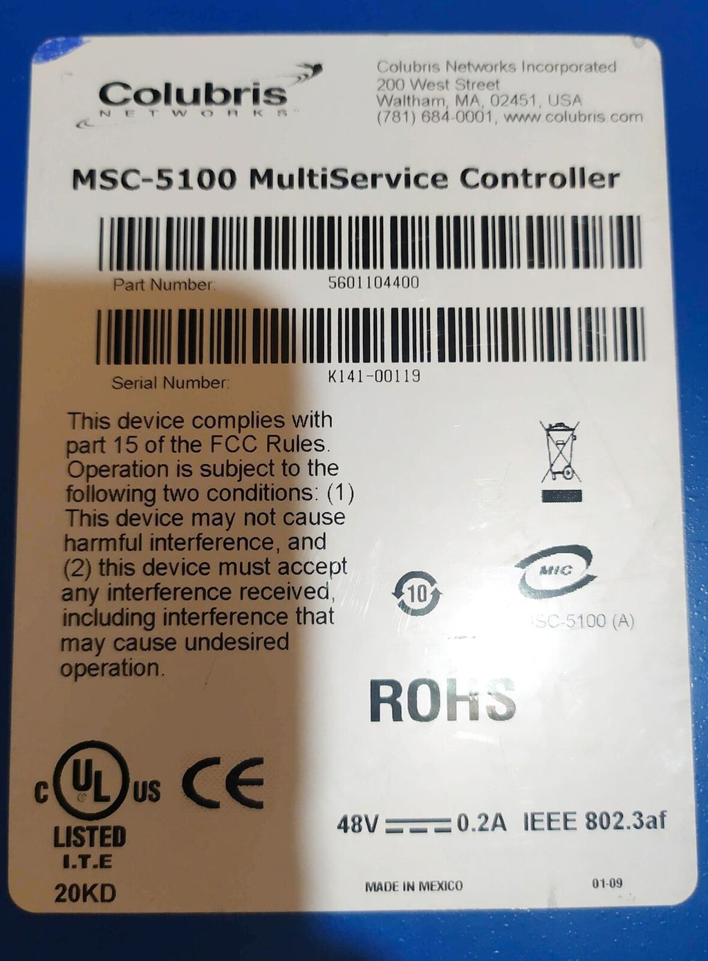 🏷️ Modèle Colubris MSC-5100 Multiservice Controller