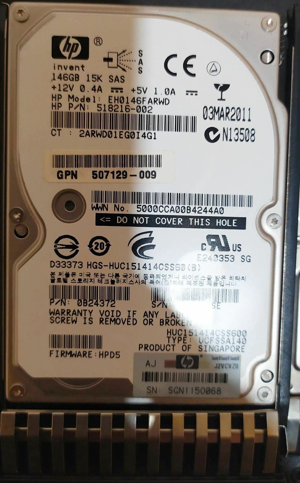 | 2 unités | 146 GB | HP Enterprise | SAS 6Gb/s | 15000 RPM | 2.5" SFF |