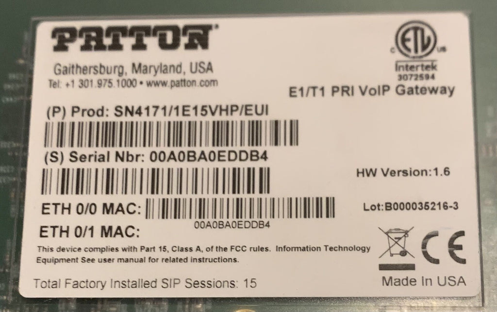 đ Passerelle VoIP PATTON SN4171 15 Canaux E1/T1 PRI Haute PrĂ©cision đ¶