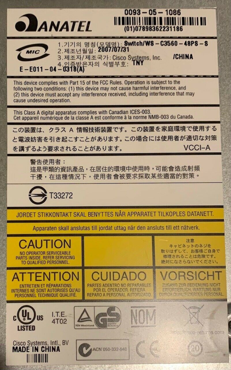- 1x Switch Cisco Catalyst WS-C3560-48PS-S testé et fonctionnel