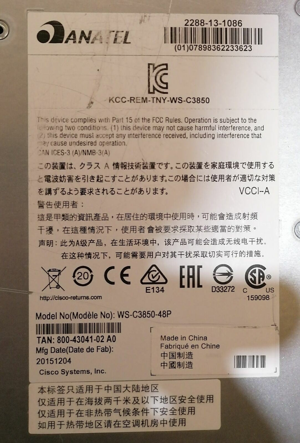 Testé et fourni avec cable d'alimentation. Fourni avec 1 STACK T1-50CM V01 et 1 37-1121-01 REV01.Produit d'occasion donc comporte des traces d'usures. Nos Switch Sont Entièrement D'ORIGINE