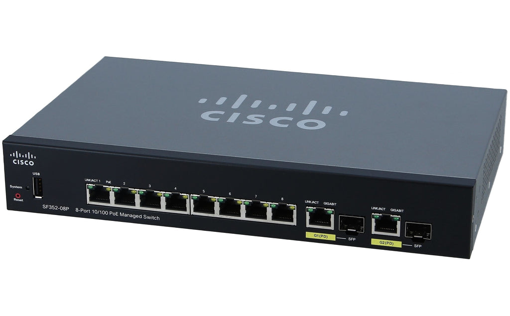 Switch Professionnel Cisco SF352-08P-K9 V02 – 8 Ports Fast Ethernet PoE, Gestion Avancée, Alimentation Incluse